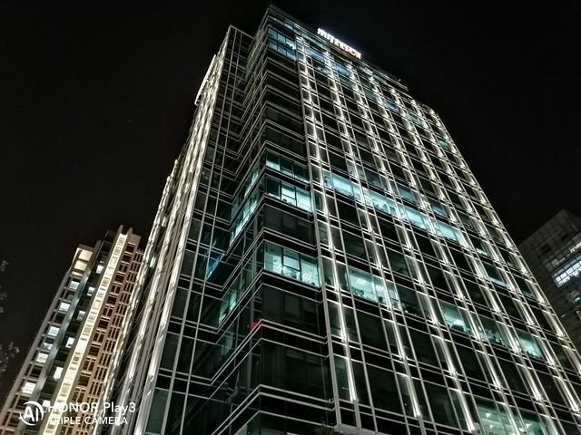 荣耀Play3采用了AI三摄,4800万主摄+800万广角+200万景深镜头的配置,让荣耀Play在拍张上有着多样的玩法。另外,荣耀Play3还采用1/2英寸超大CMOS主摄, 支持画面超清直出, 可以发现更多的细节美,同时支持 4 合 1 光融合模式,f/1.8光圈保证了足够的进光量,另外,有着电子防抖和多帧降噪的加持,让荣耀Play3在夜景拍摄上也有着强势。这里我们就先来看看荣耀Play3的夜景拍摄样张吧。